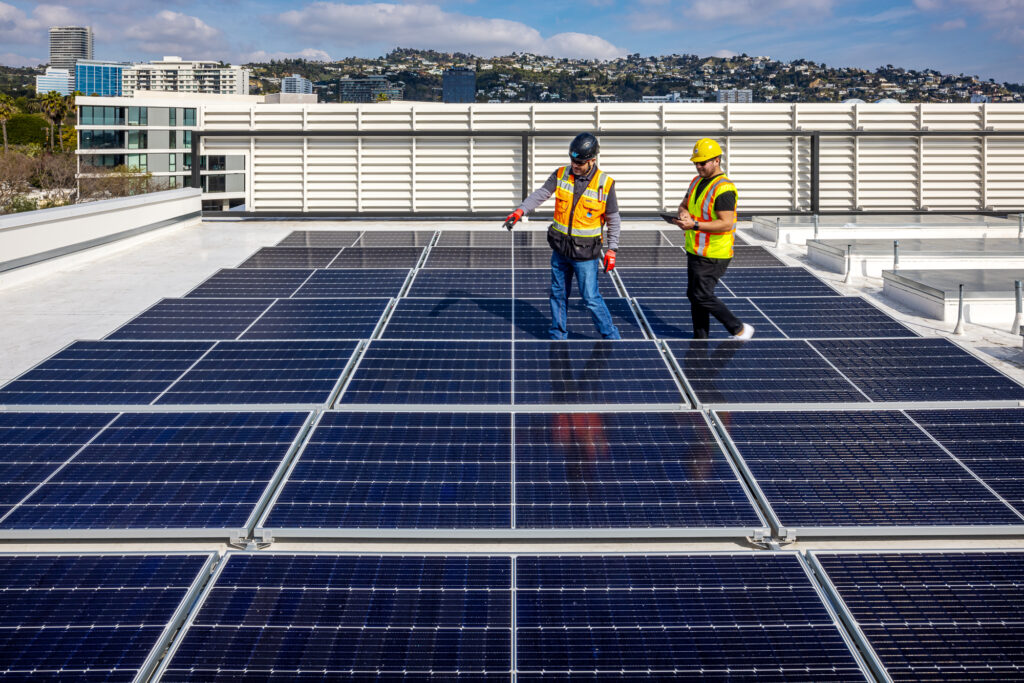 Rooftop installation of 10 kW photovoltaic system for Swinerton Builders.